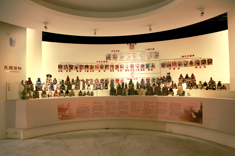 展區分為:1.原住民族祭典、2.醮祭、3.臺灣的廟、4.出巡陣頭、5.民間信仰諸神、6.祀神用具、7. 民間戲曲音樂。