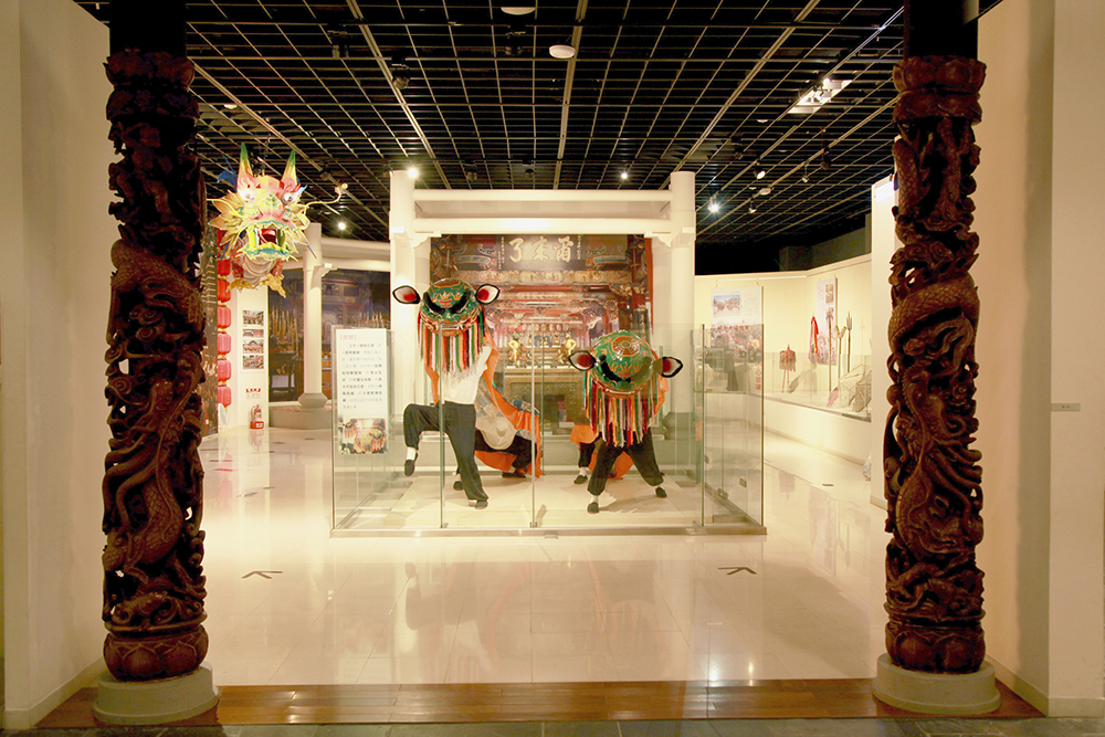 融合情境、模型場景展示,營造廟埕、廟會廣場、陣頭的熱鬧氛圍,並介紹臺灣民間信仰諸神、藝能、戲曲音樂等多元風貌。
