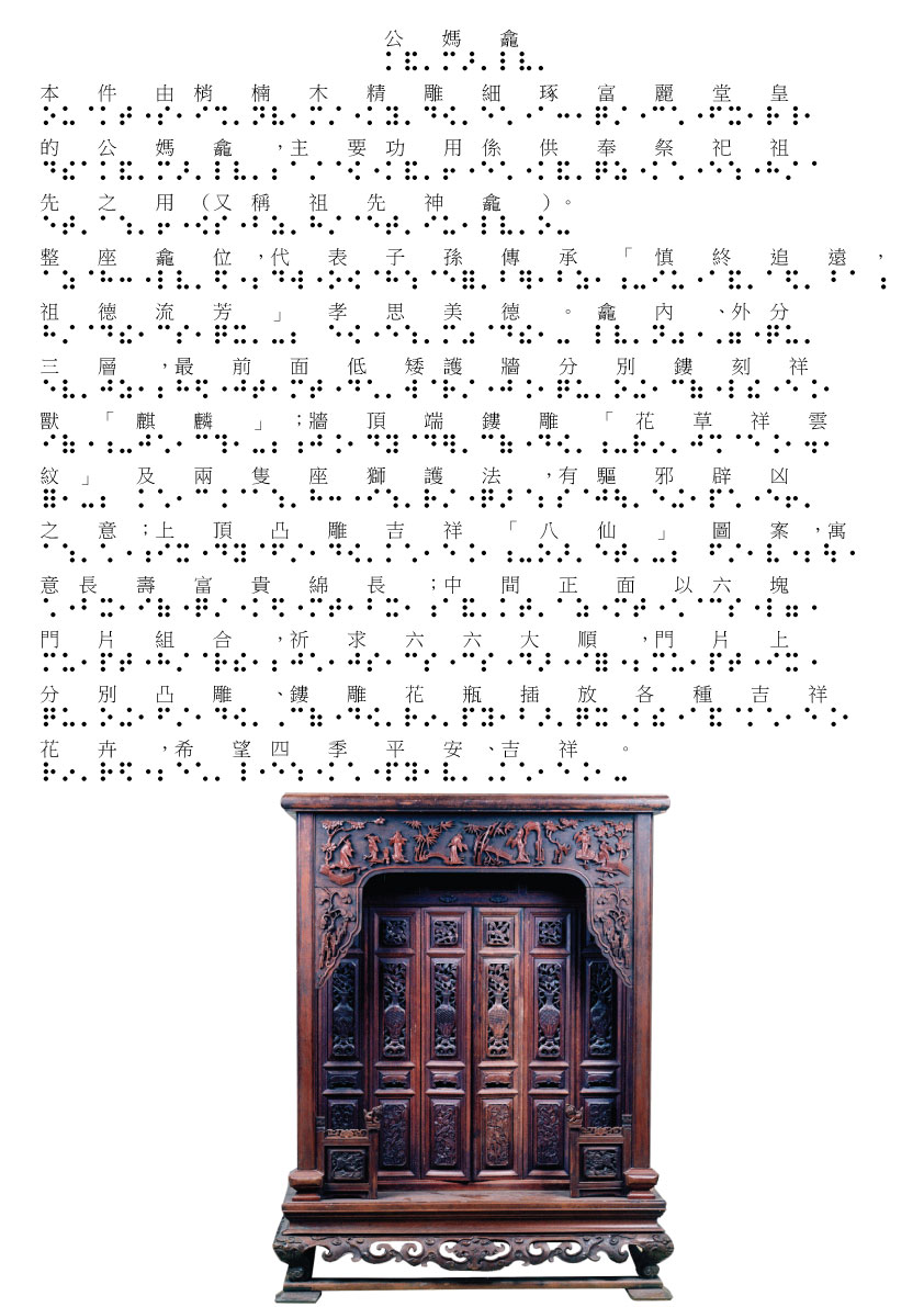 本館自民國106年9月起,於文物、史蹟二大樓1-3樓公共空間新增展示點字書簡介導覽服務,俾利視障者瞭解利用。