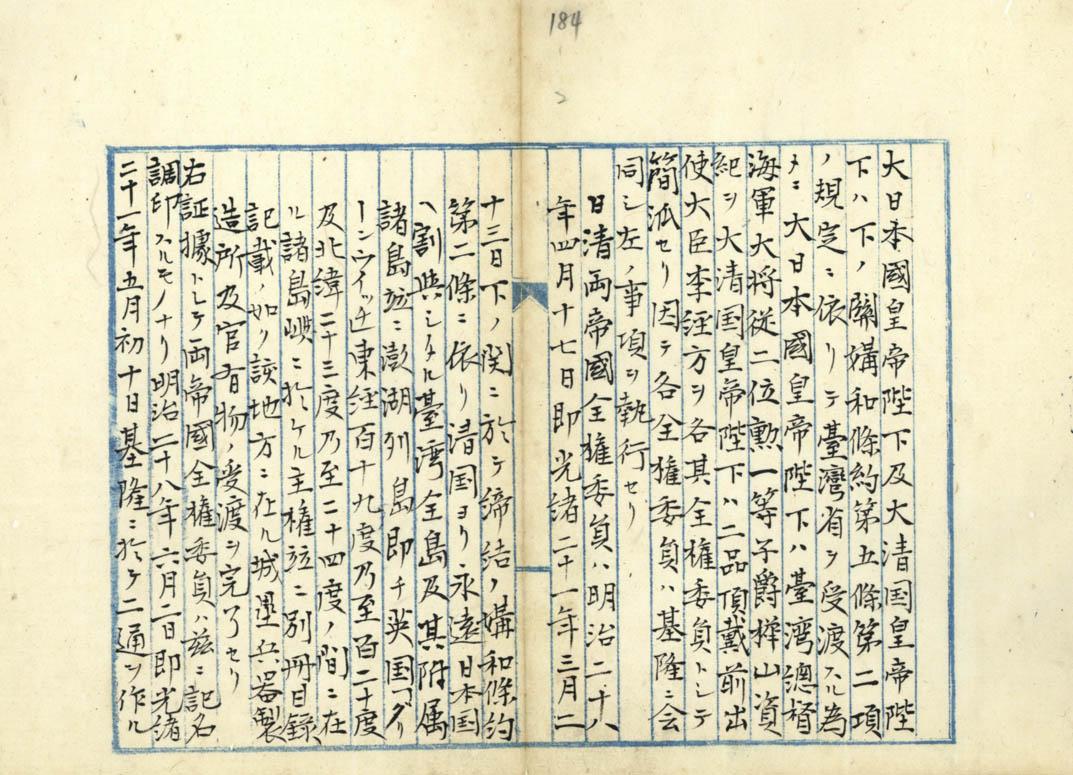 1895年4月17日由李鴻章、伊藤博文在日本下關簽署「馬關條約」。依該條約規定:將臺灣及澎湖群島割讓給日本。