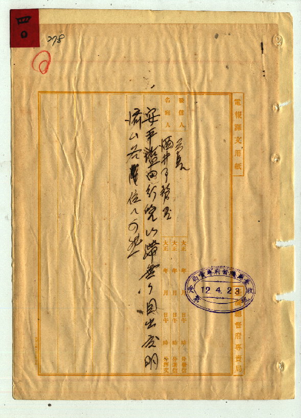 1923年4月,代行大正天皇職權的攝政宮裕仁親王即後來的昭和天皇,曾來臺灣訪問12天,足跡遍及臺灣西部各地及澎湖島,臺灣總督府最重要的事業機構,專賣局亦是其視察對象,專賣局檔案中即留存包括諸多照片在內的詳細視察紀錄,本件即為要精確掌握巡視安平鹽田及赴專賣局大樓來去正確時間,請專賣局提供之文書紀錄。