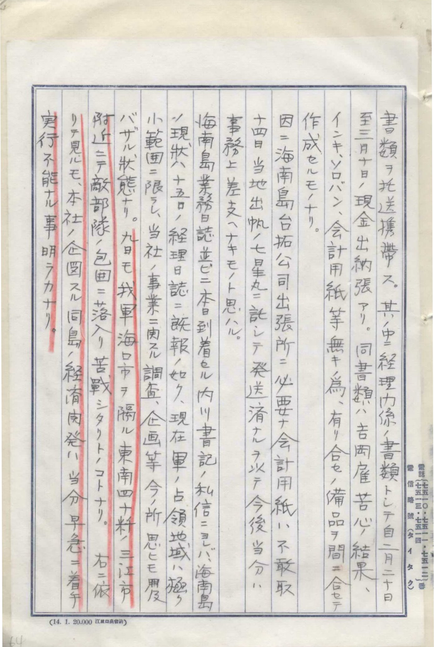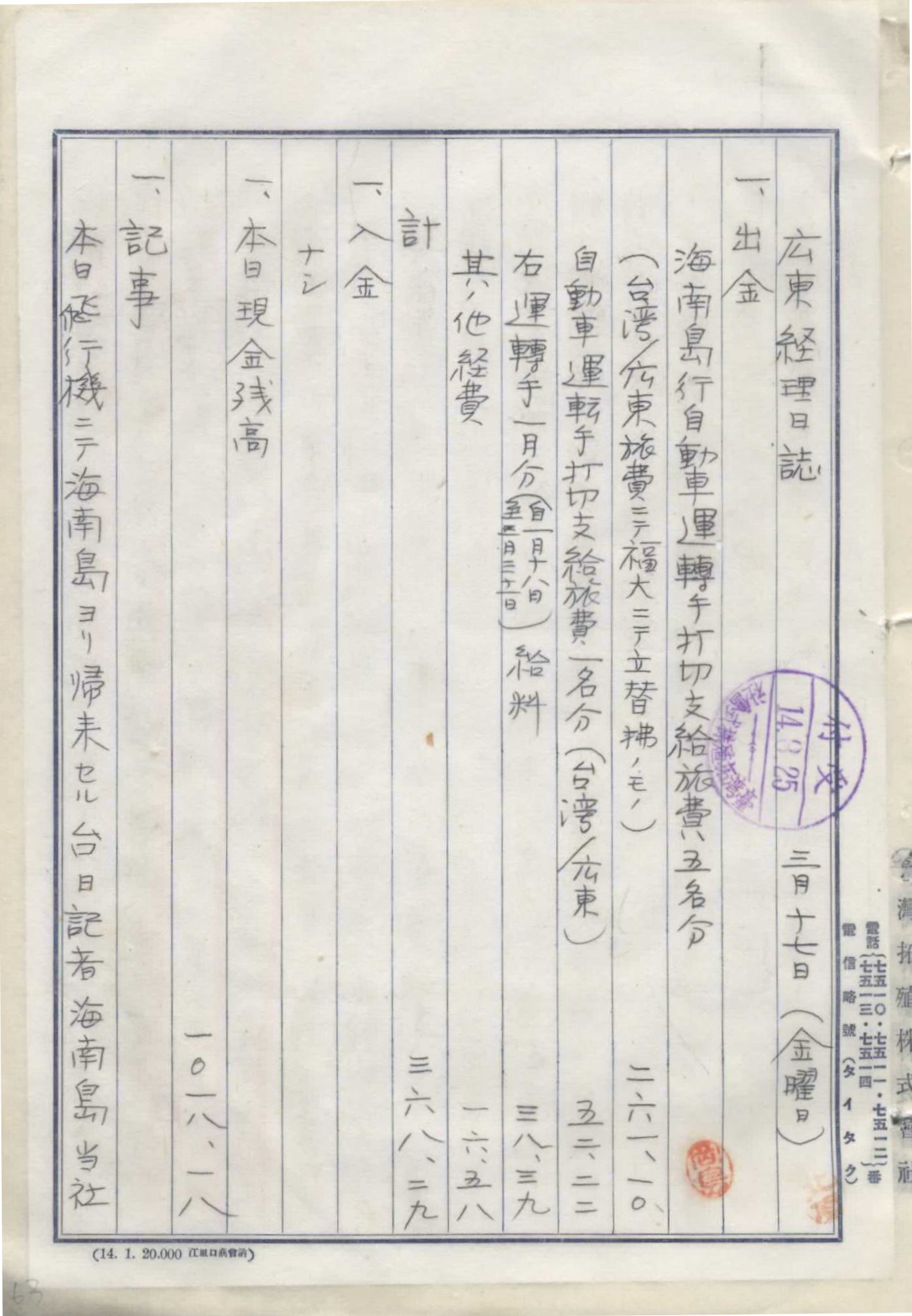 日軍佔領廣東及海南島後,臺拓亦到廣東及海口市設置出張所,而留下當時廣東各地紀錄。1939年3月17日臺拓人員於海口市見到街頭行走的海軍慰安婦。