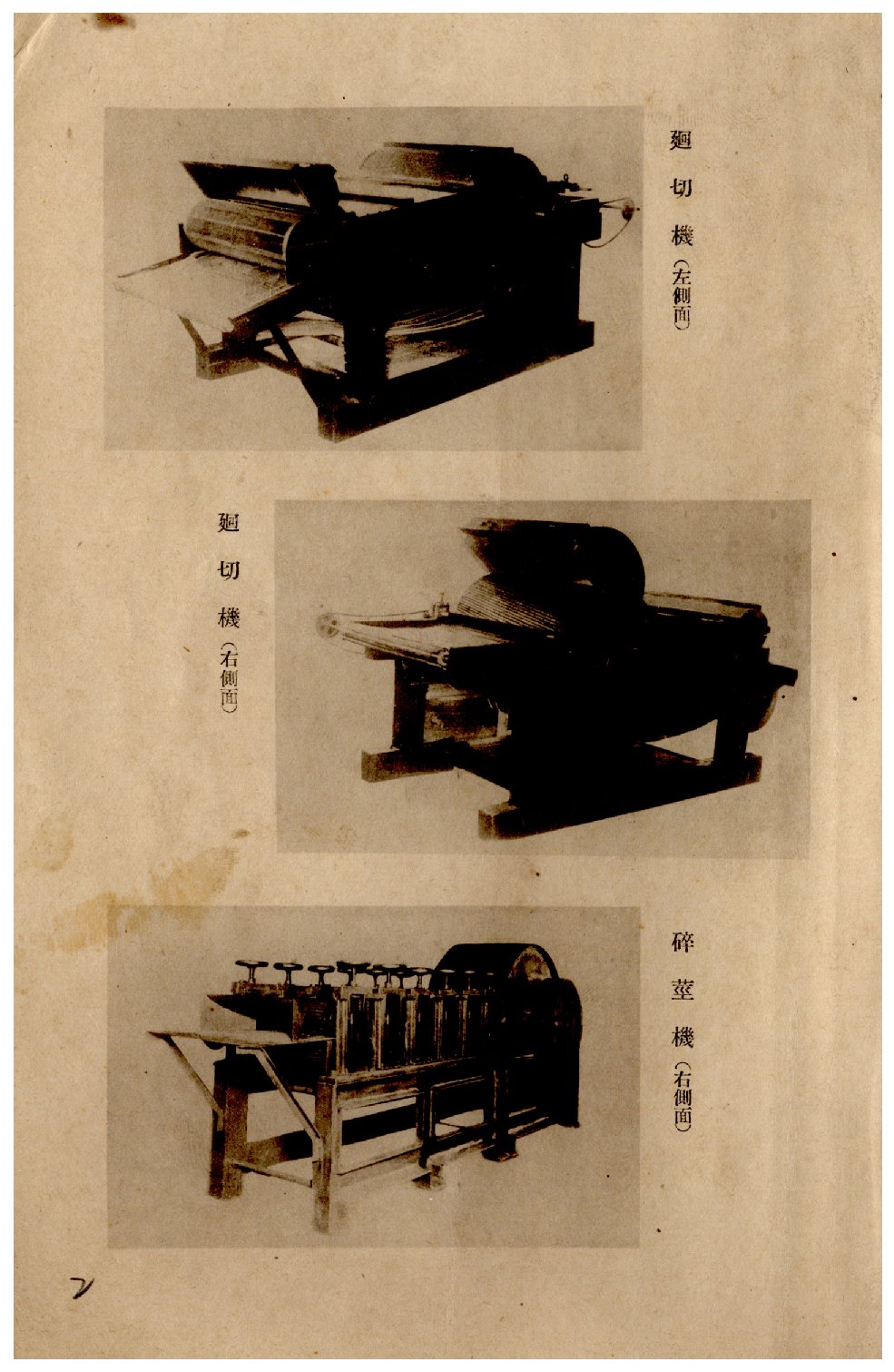 臺拓針對拓殖有利的各式產業,均會聘請專業人士深入研究調查,例曾任臺北帝國大學教授與總督府農業試驗所所長的渋谷紀三郎博士,後來便轉入臺拓工作,本件即1944年渋谷紀三郎任職臺拓時,由臺拓出版,書中記錄有當時編織苧麻纖維所使用碎莖機、迴切機與紡絲器的圖像。